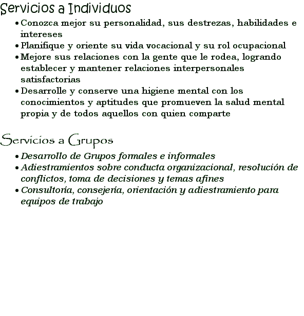 educativos, psicológicos y sociales a niños, jóvenes y adultos en